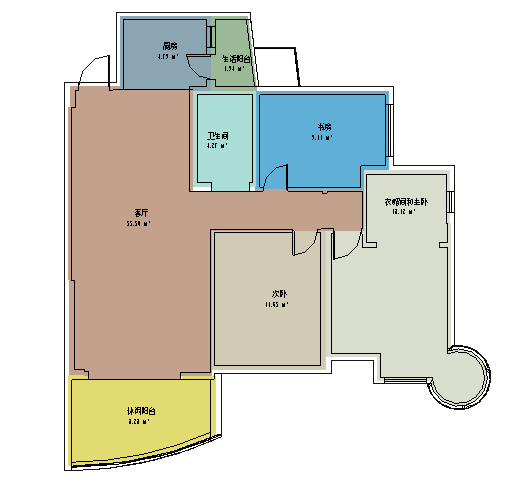 通过建模软件设计出整个建筑物的内饰各个构件,其中,包括房间的各个不同厚度的墙体,各个房间的房门,以及各个房间的不同窗户等等构件,从而,软件可以精算各个房屋的面积,包括了客厅,过道,主卧,次卧,厨房,书房等等房间信息.房屋各个部分的地面数据是地面装饰的依据.