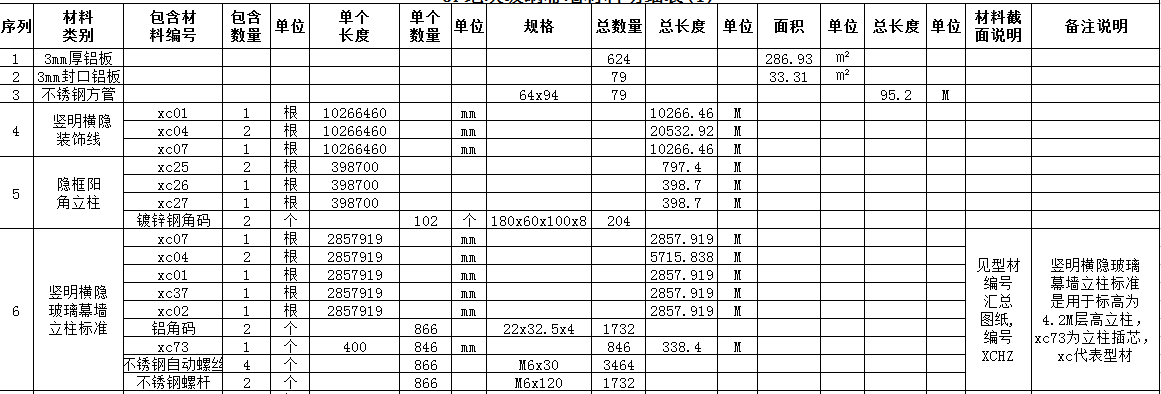 建筑物各类材料信息